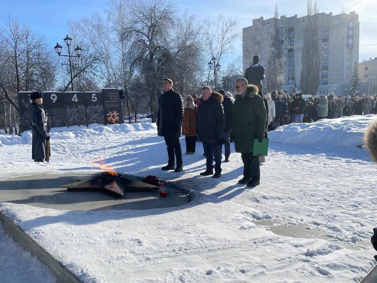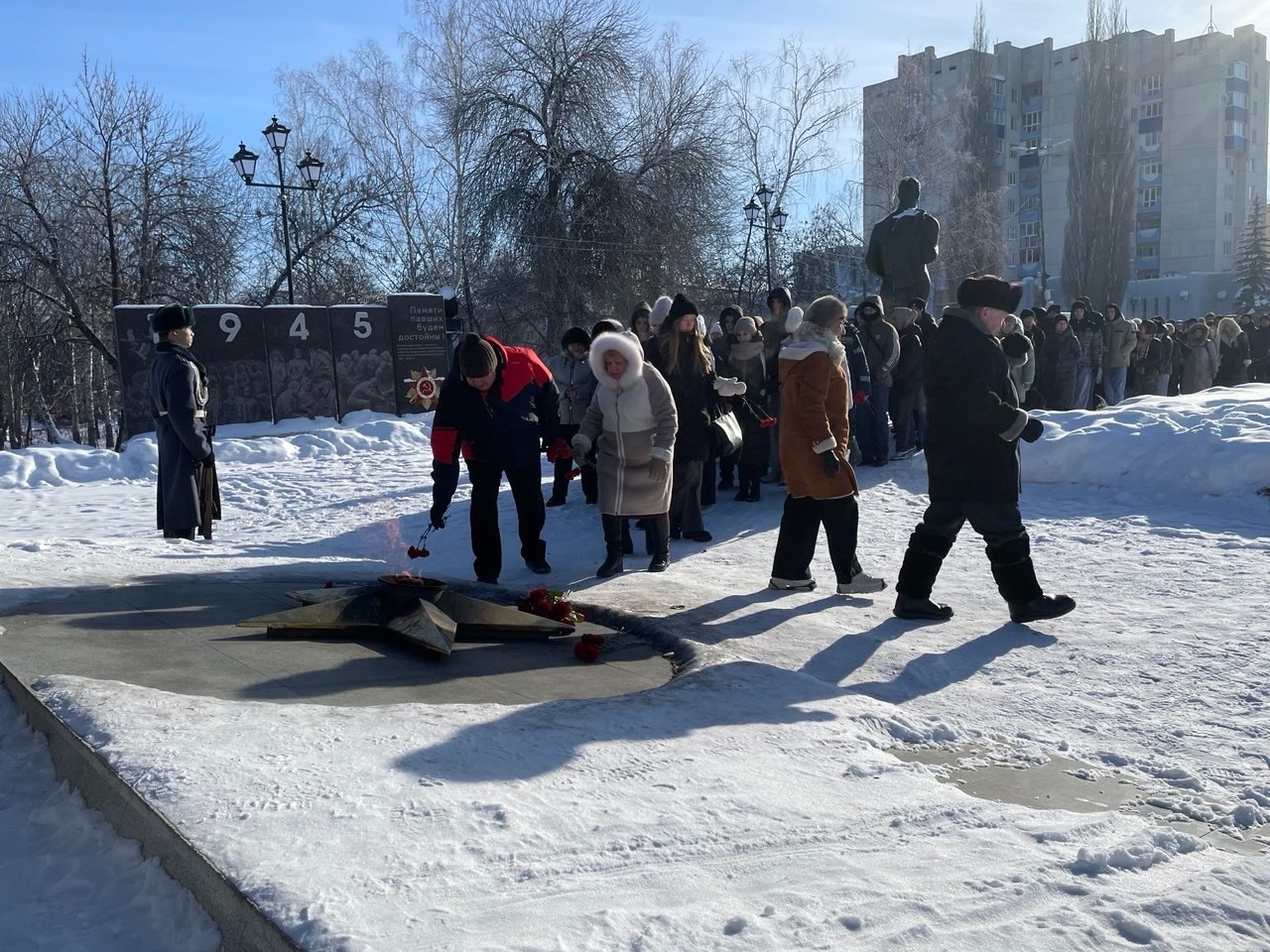 В память о погибших в блокадном Ленинграде и о его защитниках была объявлена минута молчания. После этого участники митинга возложили цветы к Вечному огню у монумента Боевой и Трудовой славы, отдав дань уважения подвигу, который навсегда останется в истории страны.