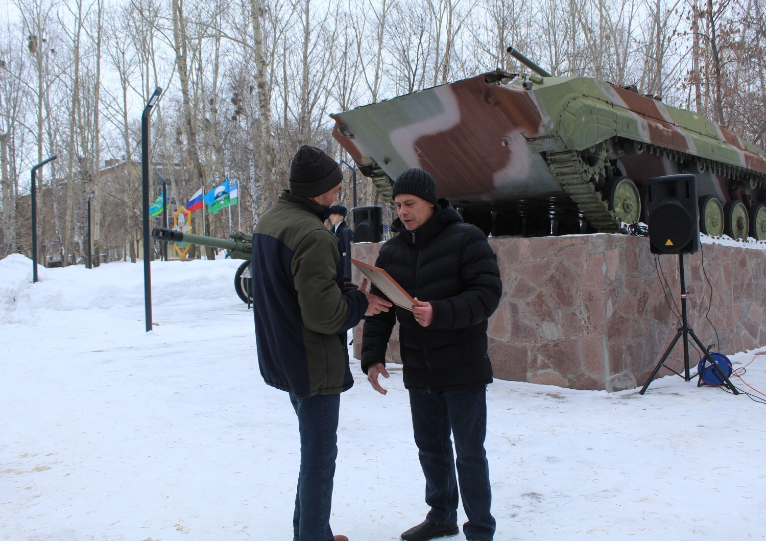 У мемориального комплекса воинам-интернационалистам собрались ветераны боевых действий. Присутствовали исполняющий обязанности главы администрации городского округа Эвелина Зверева, председатель городского Совета Евгений Оськин, заместитель главы администрации города по социальному развитию Юлия Чеботаева, военный комиссар города Кумертау и Куюргазинского района Максим Пержинский, председатель Совета ветеранов войны, труда, Вооружённых Сил и правоохранительных органов Муаед Мамбетов, руководитель Кумертауского местного отделения Всероссийской общественной организации ветеранов «Боевое братство» Дмитрий Норкин, руководители организаций и учреждений города, молодёжь и жители города.