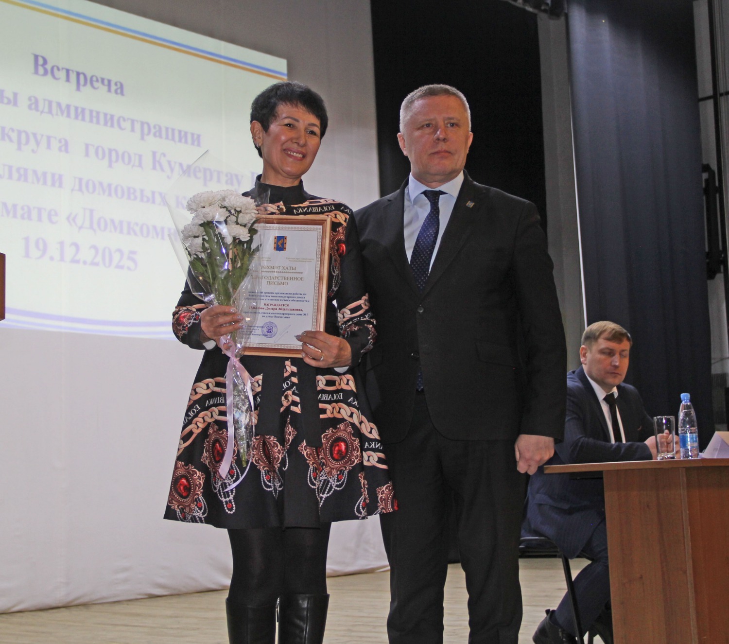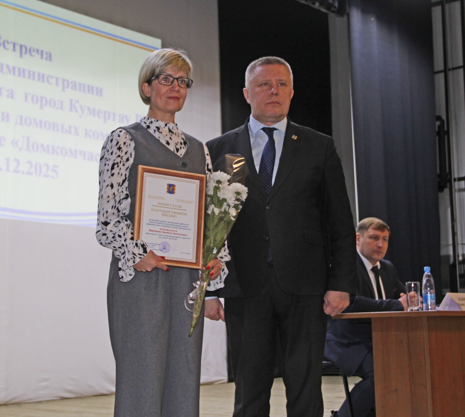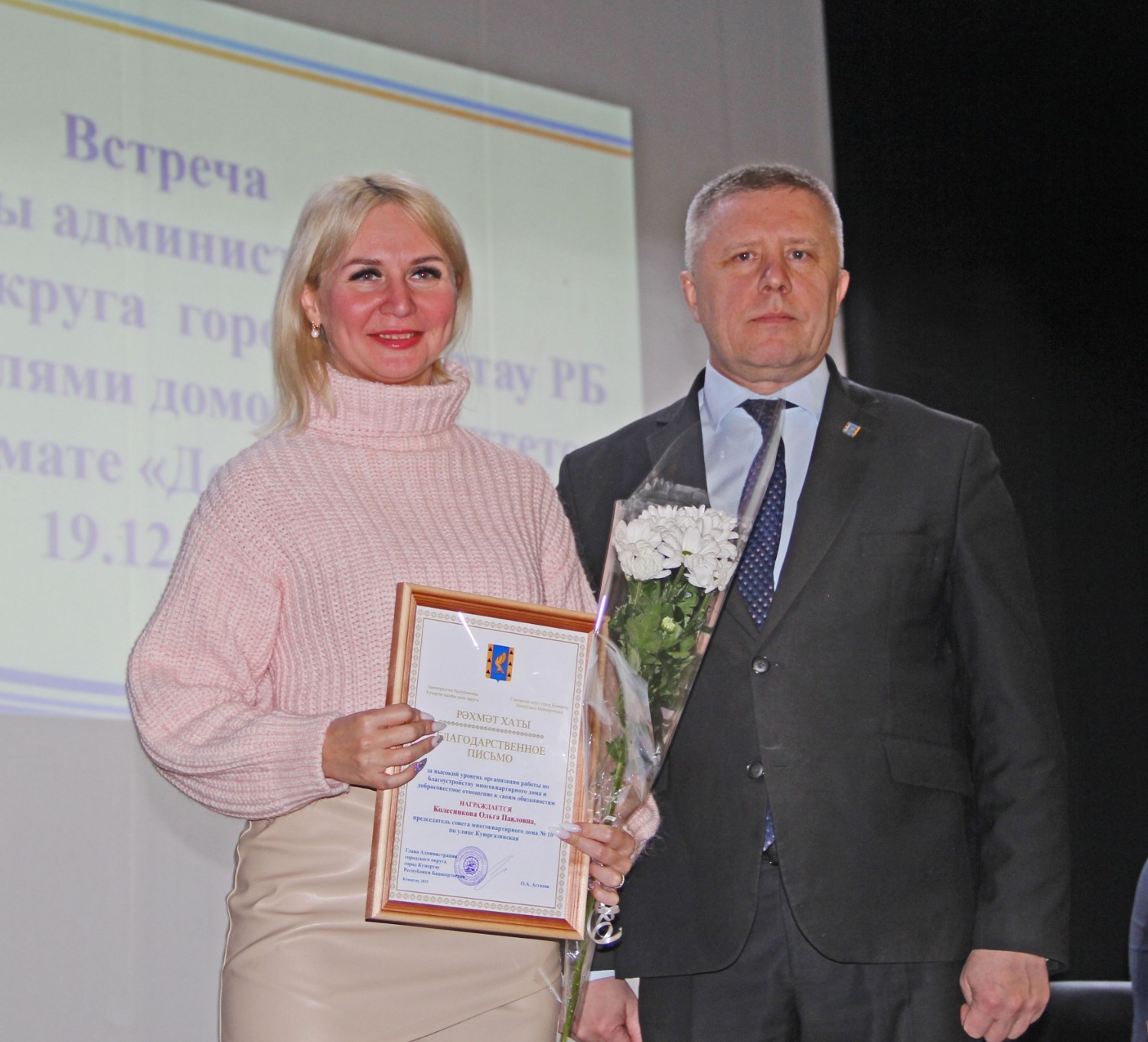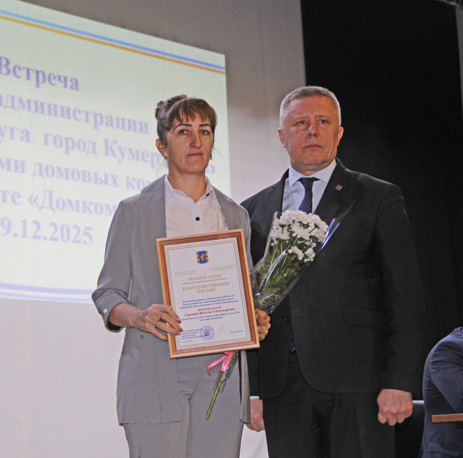 По доброй традиции «Домкомчаса», была проведена церемония награждения активных председателей домовых комитетов. В числе тех, кто своим трудом делает наши дома и дворы лучше, комфортнее и красивее, были названы: Валентина Леонидовна Бобылёва (дом №4 по улице Дзержинского), Валентина Петровна Быкова (дом № 12а по улице Комсомольской), Галина Владимировна Власова (дом №6 по улице Бабаевской), Людмила Анатольевна Воронцова (дом №1 по улице Советской), Надежда Михайловна Зеленина (дом № 7 по улице 60 лет БАССР), Дилара Абдульхаковна Ильясова (дом №3 по улице Вокзальной), Надежда Егоровна Исмагилова (дом №20 по улице Ленина), Гульнара Ураловна Клубкова (дом №2 по улице Ленина), Ольга Павловна Колесникова (дом №10 по улице Куюргазинской), Наталья Александровна Сережина (дом № 4 по улице Пушкина), Олег Сергеевич Туманов (дом №12а во втором переулке Салавата) и Алексей Радикович Шляхин (дом № 13/1 по улице Магистральной).