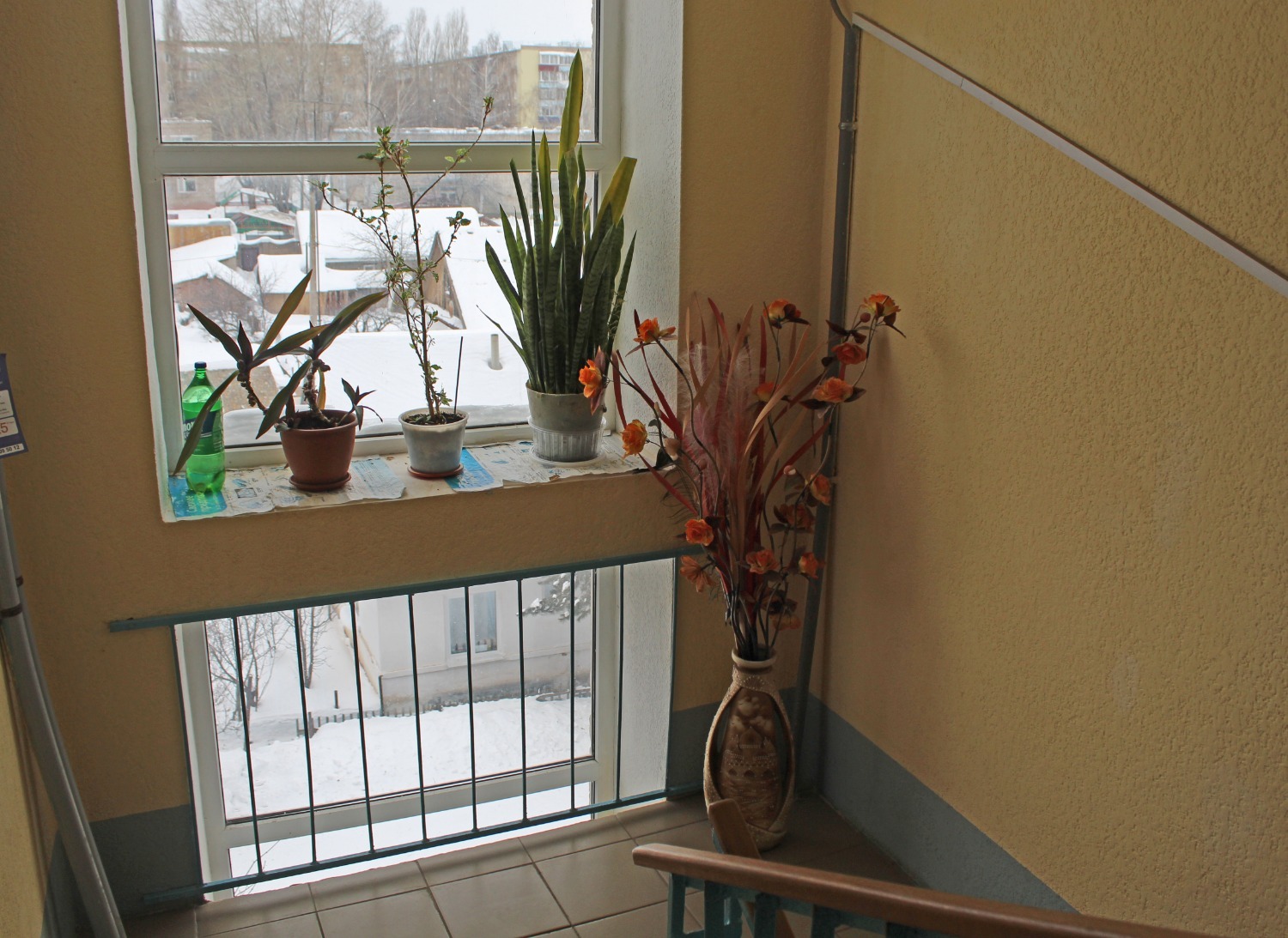 В ходе общения с жильцами дома мы не могли не отметить, что народ здесь живёт очень дружный, а возглавляет их активный и неравнодушный председатель домкома, личным неусыпным вниманием продвигающий каждое начинание. Неудивительно, что в 2019 году дом победил в республиканском конкурсе, получив звание «Лучшего многоквартирного дома» и приз в 100 тысяч рублей – на эти деньги в подъездах были заменены тамбурные двери и выложена новая плитка. В 2023 году преобразилась дворовая площадка дома по муниципальной программе «Кумертауский дворик». Постепенно, по одному, ремонтируются подъезды за счёт взносов жильцов на текущий ремонт: три подъезда уже сделаны, четвёртый на очереди в этом году. Образцовый порядок поддерживается самими жильцами: никто не мусорит, не расписывает стены, наоборот, украшают подоконники мягкими игрушками и вместе ухаживают за цветами.